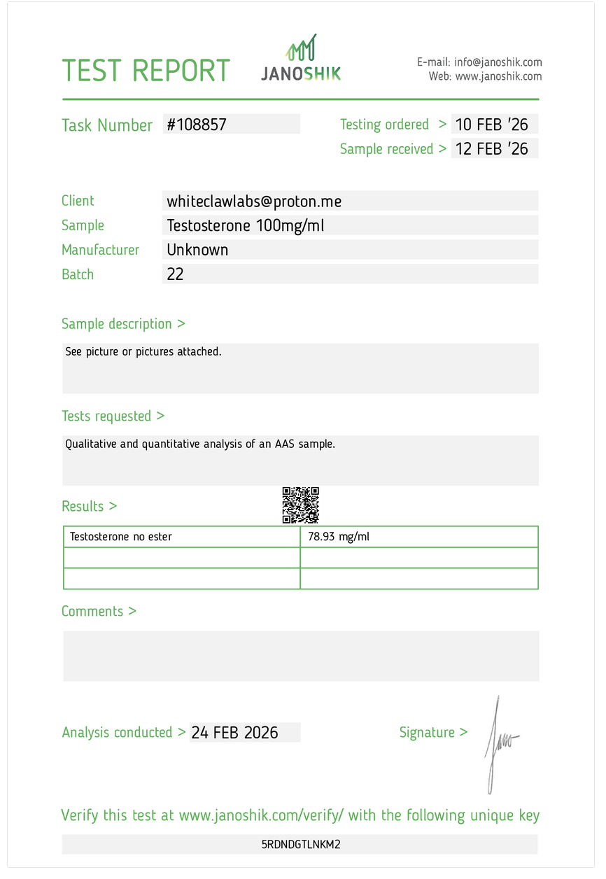 Testosterone No Ester 100mg/mL